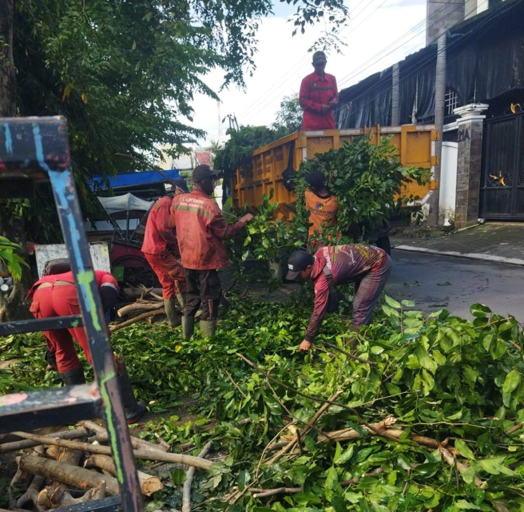 Tim di lapangan segera melakukan pemotongan batang pohon, pembersihan ranting, serta membuka akses jalan yang sempat tertutup.