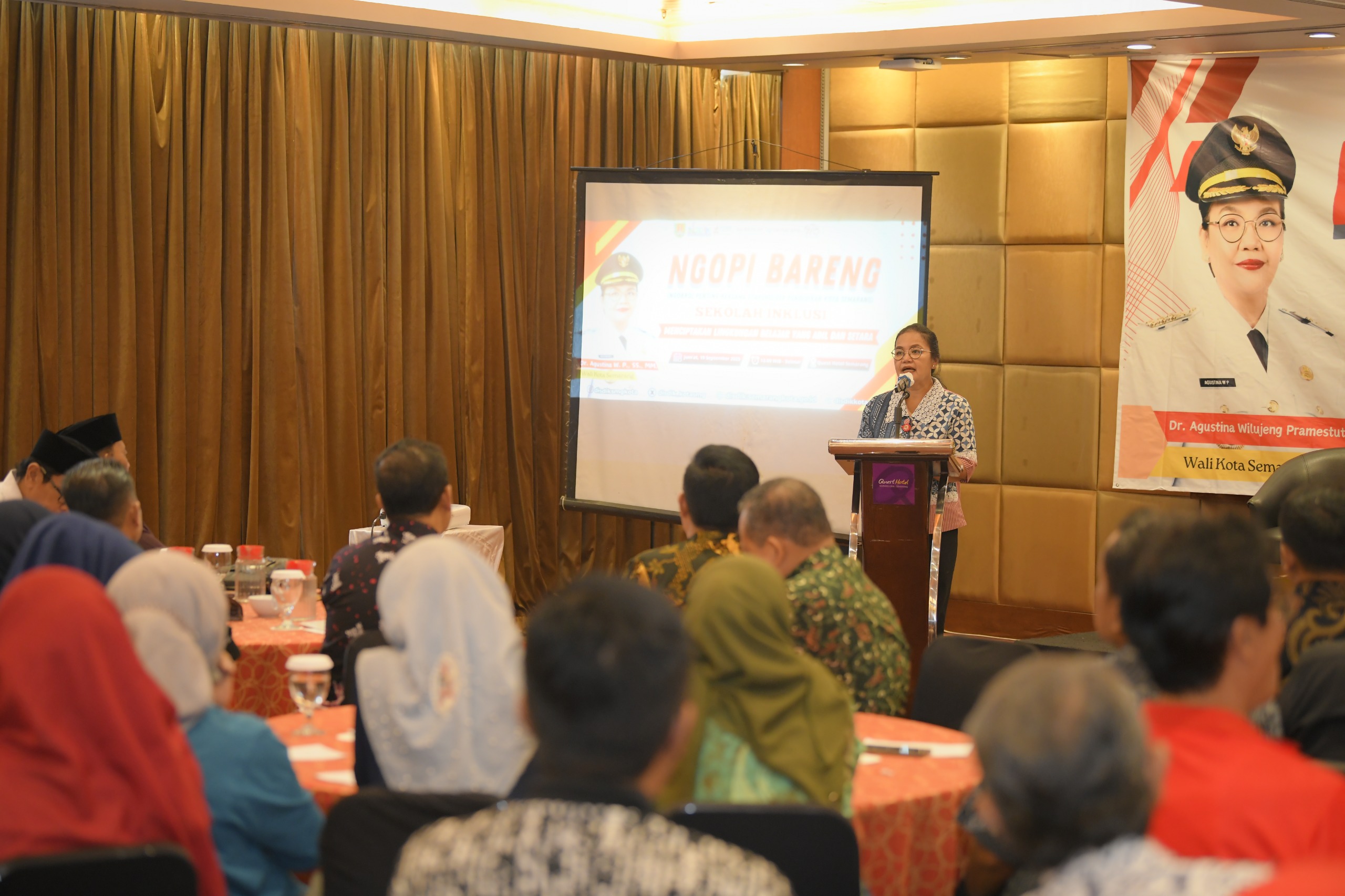 SEMARANG – Wali Kota Semarang, Agustina Wilujeng menegaskan pentingnya penerapan pendidikan inklusif yang adil dan setara bagi seluruh anak di Kota Semarang. Hal itu ia sampaikan dalam acara Ngopi Bareng (Ngobrol Penting Bersama Stakeholder Pendidikan) bertema “Pendidikan Inklusif” di Quest Hotel Simpang Lima, Jumat (19/9).