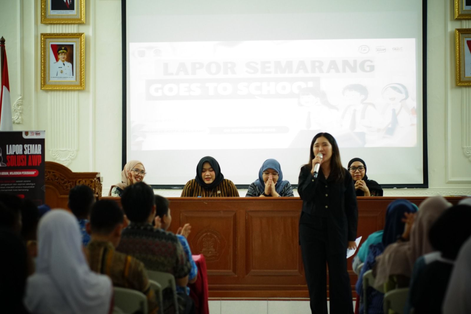 SEMARANG – Berupaya menyasar kalangan siswa sekolah terkait layanan komunikasi publik di Kota Semarang, Pemkot selenggarakan Lapor Semarang Goes to School Vol.I Tahun 2025, Selasa (9/9) di Aula SMP Negeri 5 Semarang. Melalui acara tersebut diharapkan para siswa SMP mengenal Layanan Pengaduan Pelayanan Publik Lapor Semar Solusi AWP, layanan Call Center 112, dan Layanan Informasi PPID yang disediakan oleh Walikota Semarang, Agustina bagi masyarakat di Kota Semarang.